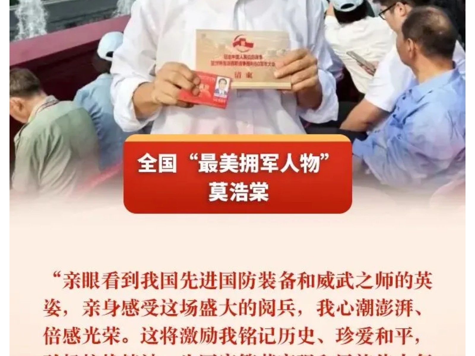 【最美擁軍人物】九三閱兵觀禮臺(tái)上的雙擁身影,他們是誰(shuí)? 發(fā)布時(shí)間:2025年09月19日 10時(shí)來(lái)源:本站原創(chuàng)瀏覽:17 人次